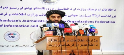 اداره امر به معروف ونهی از منکر حکومت تروریستی طالبان که میان مردم عامه, به شلاق بدستان نکیرومنکر شهرت یافته اند, چیزی را نه تنها به نام آزادی بیان نمی شناسند بلکه به آزادی رسانه وگفتار به حیث خار چشم طالبان می نگرند, چونکه به افشای جنایات بشری و دزدی و چپاولگری آنها می پردازند.