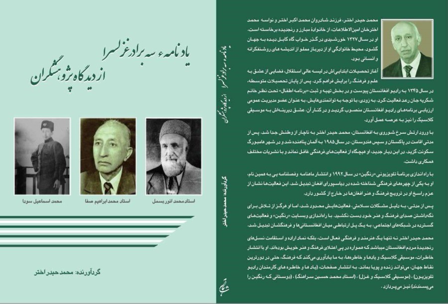 صد بار از جناب محترم آقای حیدراختر مشکور و ممنون هستم که به دایرۀ مملومات من وامثال من کمک قابل توجه کرده است. این را در انتشار کتاب یادنامۀ سه برادر غزلسرا دیدم. محترم اختر با جمع کردن نوشته ها، سخنرانی ها ومقالات یک تعداد نویسندگان و پژوهشگران در بارۀ این سه برادر معلومات بسیار ارزنده را برای تشنگان تاریخ، فرهنگ وادب تقدیم کرده است. از طریق مطالعۀ کتاب افغانستان در مسیرتاریخ مرحوم غبار، موضوع اقدام محمد اختر خان پسر ناظر محمد صفر خان علیه امیر امان خان را خوانده بودم. با خواندن کتابی سه برادر غزلسرا، متوجه شدم که محترم محمد حیدر، تخلص خود را از برادر بزرگتر سه غزلسرا، از اختر جان گرفته است.