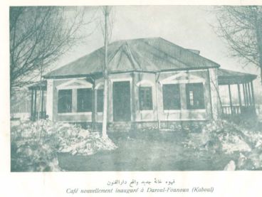 در مقابل قصر دارالامان درست در گوشه سه راه جاده دارالامان قهوه خانه ایی ساخته شده بود که کارمندان قصرهای دارالامان و تاج بیگ و همچنان موزیم کابل برای نوشیدن قهوه از آنجا استفاده مینمودند . ضمنا" ایستگاه ریل که بین باغ علم گنج و جوار زیارت شاه دوشمشیره تا دارالامان امتداد داشت . این قهوه خانه محل مناسبی بود تا مسافران این دو کنار شهر را میزبان باشد. محمد نادرشاه سلطنت شاه امان الله خان و یک وقفه حدود 9 ماهه سلطنت امیر حبیب الله کلکانی ؛ دیگر نام دارالامان رسما" از قلم افتاد وبا نام جدید دارالفنون مسما گردید. روی این منظور قهوه خانه متذکره نیزبه قهوه خانه دارالفنون تغییر نام گرفت .