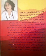 برای بانو دکترسیما علی بهترین ها را آرزو دارم. خوشنود هستم که شما را دیدم و این کتاب، تحفه یی را که عزیز میدارم از شما گرفتم. آرزو دارم با این جهان دیده گی ها و سرگذشت وسرنوشت، مصدر کمک های بیشتر و دلسوزهای پرعاطفه که دارنده ی آن هستید، در کلینیک صحی برای بیماران شوید. *