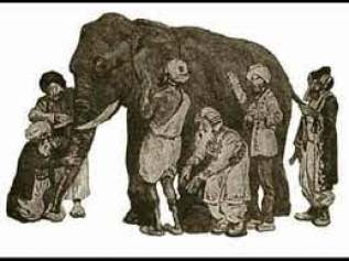 یکی از روایتهای تمثیلی در مثنوی معنوی قصۀ پیل است در خانۀ تاریک و داوریها آنانی که هر کدام به بخشی از اندام پیل دست کشدند و بعد تصور خود را حقیقت کامل انگاشتند.