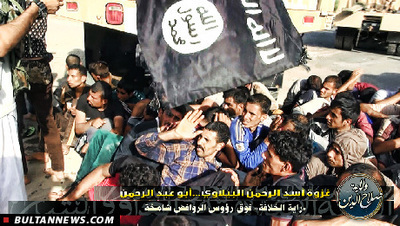 منابع بین المللی همچنان اظهار داشتند که این گروه، دست به شکنجه و اعدام صحرایی اسیران عراقی زده و از هیچنوع بیرحمی و کشتار در مناطق تحت تصرف خویش ابا ندارند. گزارشهای تصویری نیزازطریق رسانه های بین المللی، نشاندهندۀ کشتارهای پیهم دستجمعی سربازان عراقی توسط افراد تفنگ بدست گروه " داعش " است که با بلندکردن شعار " الله اکبر" انجام داده میشود.