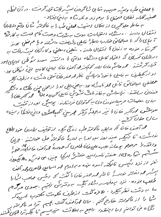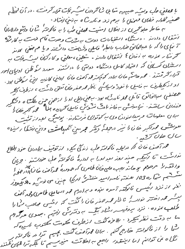گفتنی ها تا این جا رسیده بود، برای توضیح بیشتر و زمانی ساختن یا کرونیک بعضی قسمت ها و تکمیل شرح حال این سه فرزند ستم دیدۀ محمد اخترخان فقید، از ښاغلی محمد حیدر"اختر" نواسه محمد اخترخان امین الاطلاعاتِ عهد امیرحبیب الله خان خواهان کمک و طالب معلومات اضافی شدم. ایشان از دختر کاکای خود کریمه جانِ"اختر" سابق و الحال محترمه کریمه جان"رائد" که در ایالات متحده امریکا زیست دارند، در زمینه خواهان مطالب مزیدی شدند. کریمه جان با استفاده از مفاهمات با برادران و دانستنی های خود نوشته ای را فرستادند. چون تحریریِ شان نهایت جالب بود، حیفم شد بعضی قسمت های آن را استفاده نموده و ازبقیۀ آن بگذرم. بنااً با وجودی که در برخی از جاها شاید بروز تکرار بیان صورت گیرد، آن همه را تکرار احسن و از محسنات به شمار گرفته، بطور بسته و کامل ارائه و هم یک قسمت تصویر خط زیبای قلمی شان به دیدار همگان تقدیم می شود. بعین ترتیب نوشته مستند خود محترم محمد حیدر"اختر" را که در خصوص قبله گاه و کاکای محترم شان مرحوم محمد هاشم"اختر" است، با ازدیاد یگان جملات و موضوعات جهت ترتیب و تکمیل چوکات، دسته بندی و شرح احوال این سه برادر ستمدیده تقدیم می دارم. امید است که این حرکت بنده بی مورد نبوده، باب تائید و موجب قبول خاطر واقع شود.