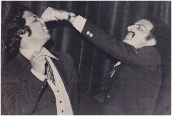 استاد سیدمقدس نگاه (طرف چپ) با استاد ستارجفایی در نمایشنامه قچری قروت